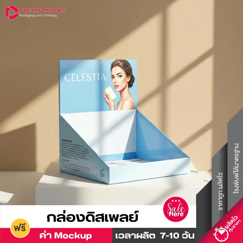 โรงพิมพ์ Premiumboxs รับผลิต กล่องดิสเพลย์ กล่องโชว์สินค้า งานพิมพ์สวย ผลิตกล่องไวเพียง 7-10 วัน มีดีไซน์ที่โดดเด่นและเป็นเอกลักษณ์ไม่เหมือนใครทำให้สินค้าของคุณเด่นขึ้นจากคู่แข่งในตลาดธุรกิจ ทีมงานออกแบบของเรามีความเชี่ยวชาญในการสร้างสรรค์และออกแบบสินค้าของคุณให้มีเอกลักษณ์ และพิมพ์ด้วยเทคโนโลยี Offset และ Digital Offset ที่มีคุณภาพมาตรฐาน ทำให้คุณได้รับผลิตภัณฑ์ที่มีความสวยงามและความคมชัด ในราคาที่เหมาะสมกับงบประมาณ อย่ารอช้า!! รีบสั่งผลิตเพื่อทำให้สินค้าของคุณโดดเด่นก่อนใคร ติดต่อได้ที่ฝ่ายขายของเราได้เลย พร้อมให้คำปรึกษาก่อนสั่งผลิต